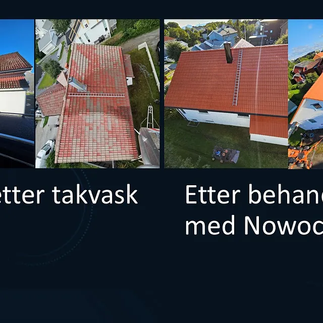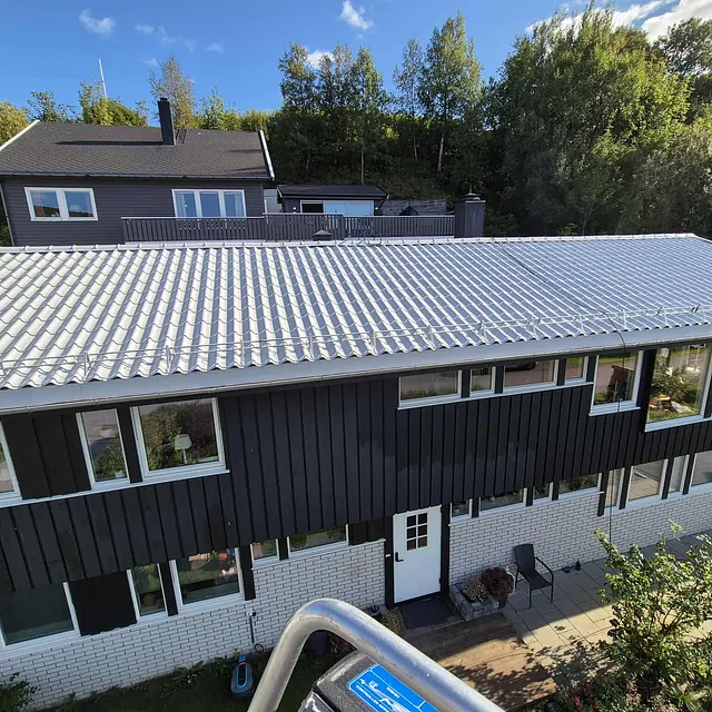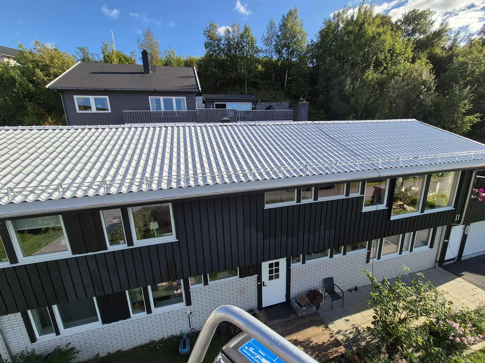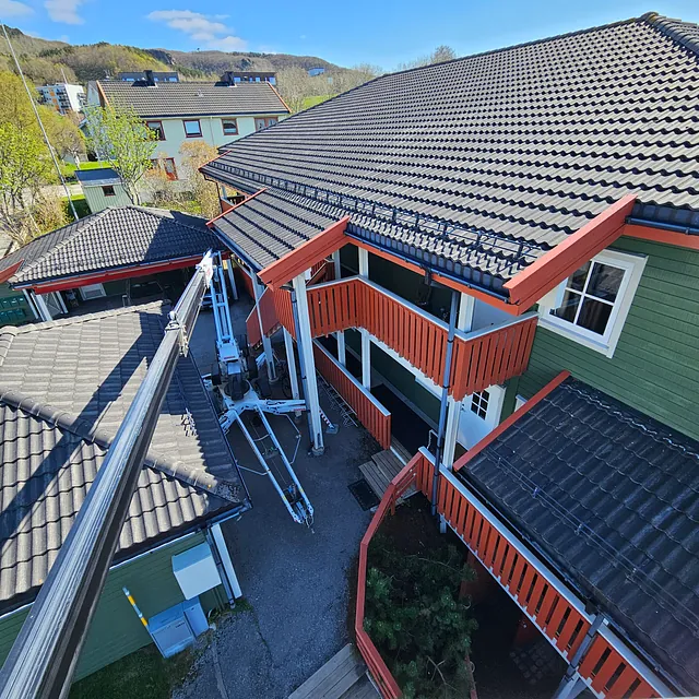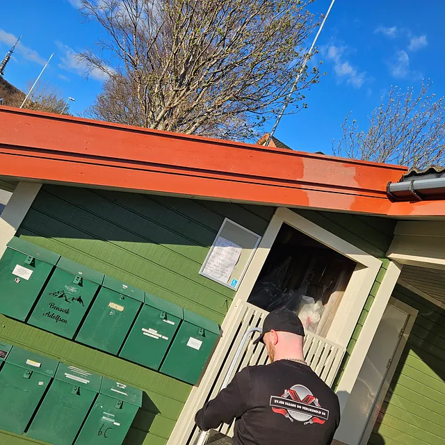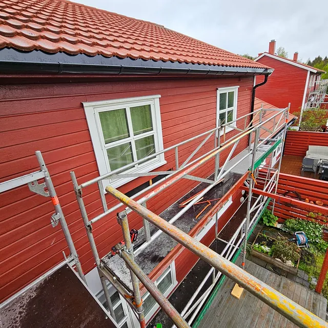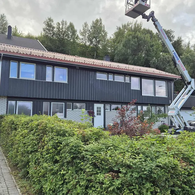 En godt vedlikeholdt fasade beskytter bygget og hever helhetsinntrykket. Vi tar oss av takvask, fasadevask, impregnering av tak, reparasjoner og rehabilitering, til mer omfattende vedlikeholdsarbeid.