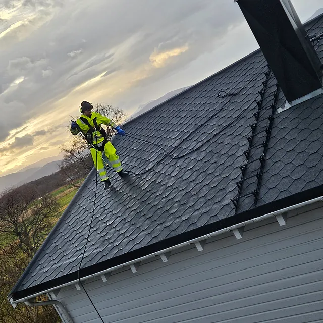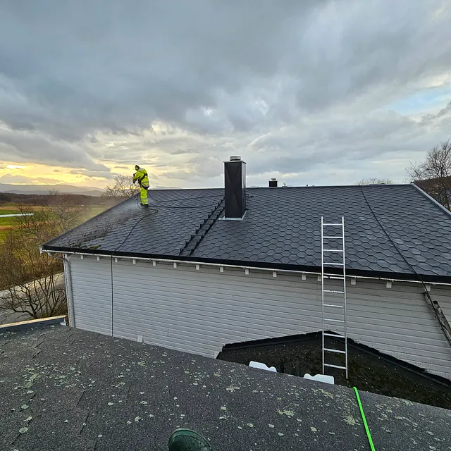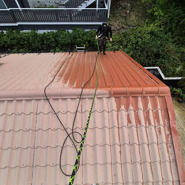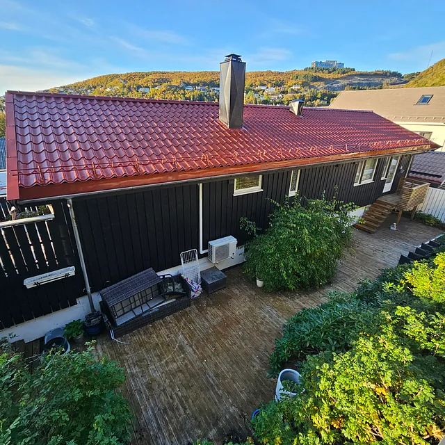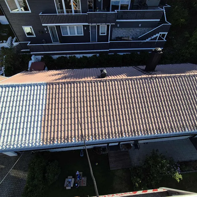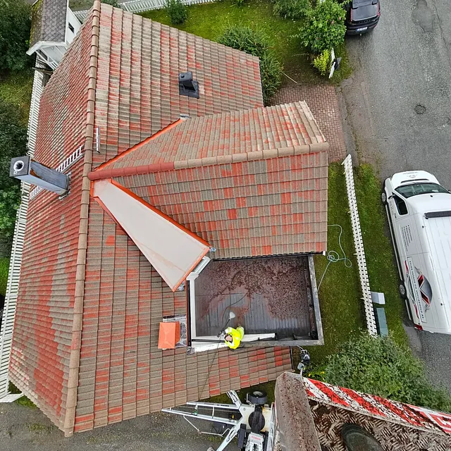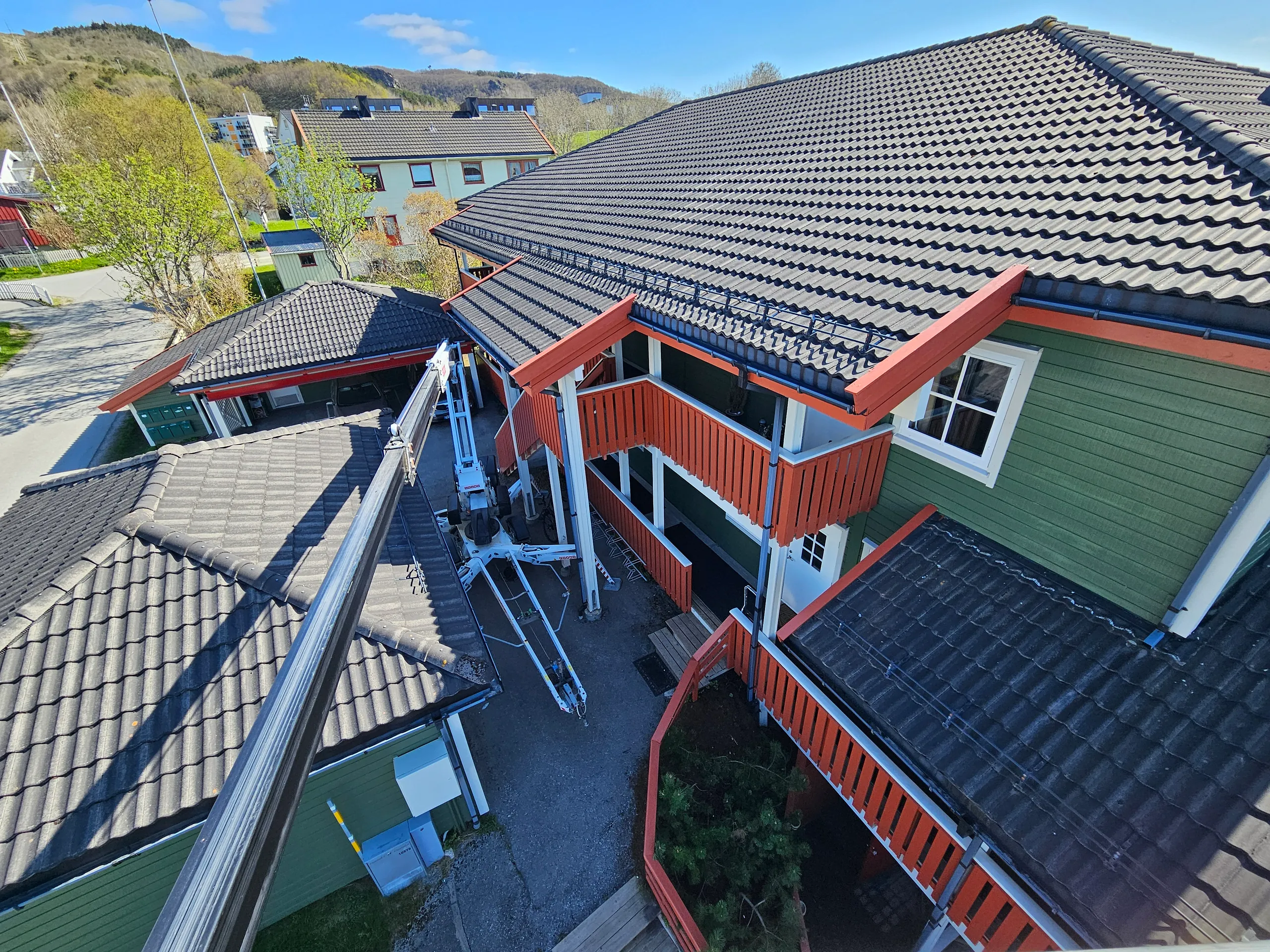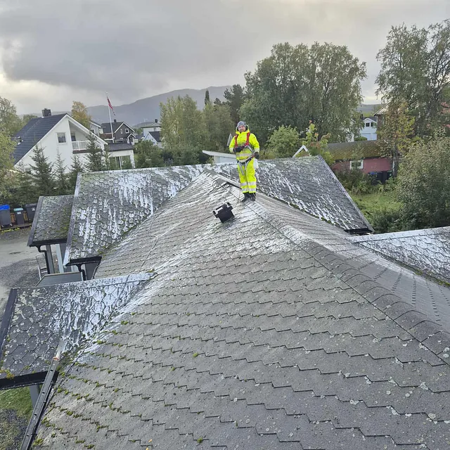 En godt vedlikeholdt fasade beskytter bygget og hever helhetsinntrykket. Vi tar oss av takvask, fasadevask, impregnering av tak, reparasjoner og rehabilitering, til mer omfattende vedlikeholdsarbeid.
